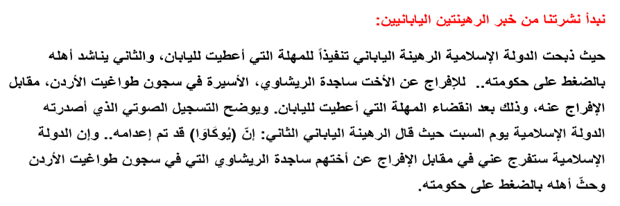 なお、この動画と、日本人及びヨルダン軍パイロット人質事件との直接の関連はないが、このタイミングでヨルダン諜報機関のスパイとされる人物の処刑を公開することは、ヨルダン側に対する圧力の一環とも受け取ることができる。