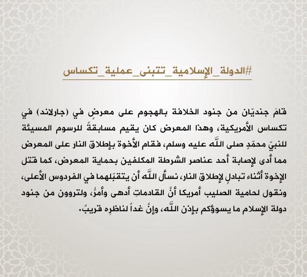 - ومرّة يقولون أنّ الشهيدين منفّذي العمليّة هما من كتيبة عقبة بن نافع التابعة لتنظيم قاعدة الجهاد ببلاد المغرب الإسلاميّ، رغم أنّنا بإسم إفريقيّة للإعلام قلنا أنّهما تابعان للدولة الإسلاميّة، والدّولة الإسلاميّة تبنّت العمليّة عبر قنواتها الرّسميّة ببيان مكتوب وبيان مصوّر وبيان صوتيّ ومقال في مجلّة دابق، وكل وسائل الإعلام الأجنبيّة أعلنت ذلك، إلاّ حمقى تونس المرتدّون فيصرّون أنّ العمليّة تابعة لتنظيم قاعدة الجهاد..