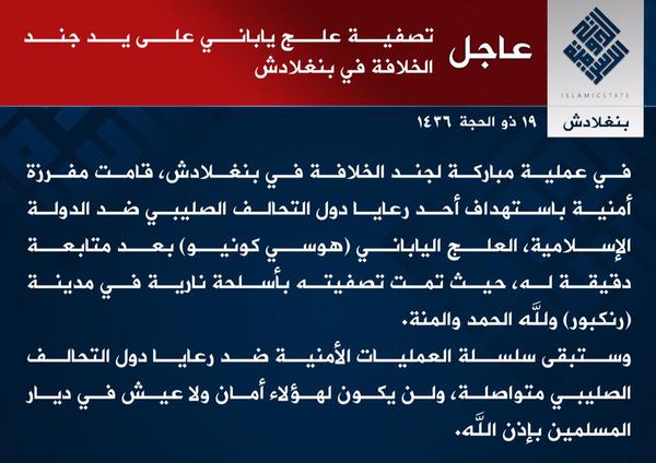 また、SNSでもイスラム国による同内容の声明(イスラム国シナイ州発)が拡散している。