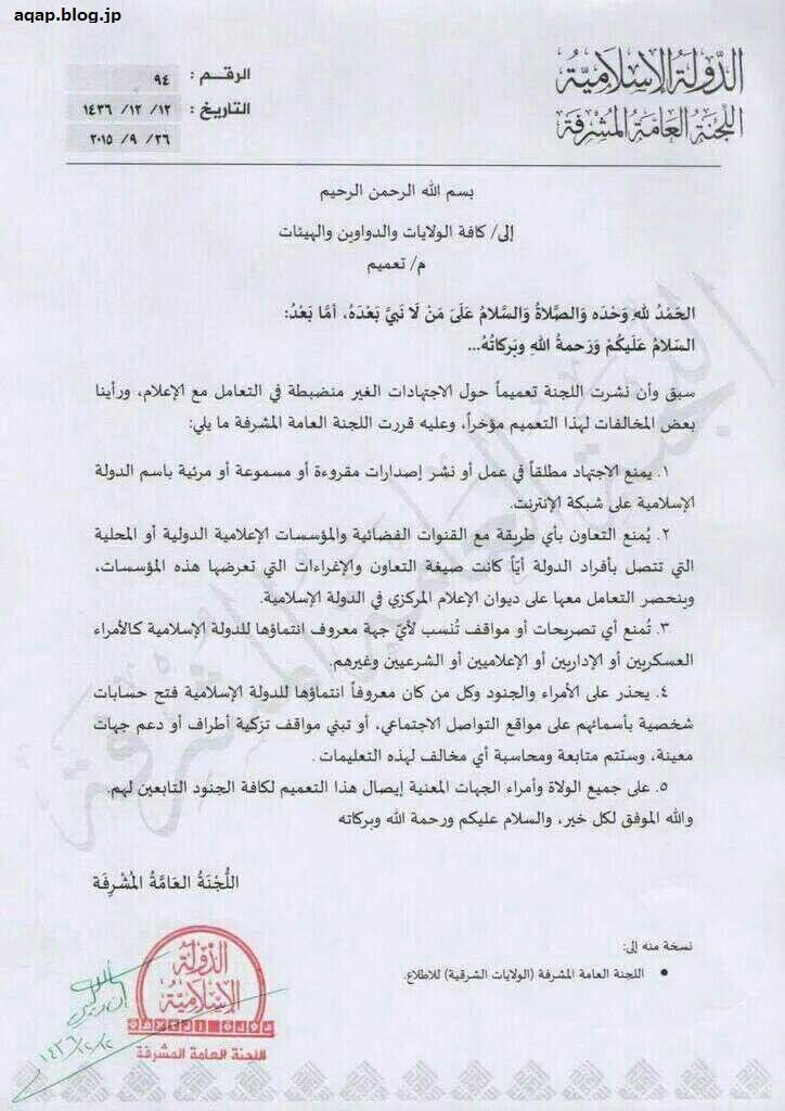カリフ・イブラヒムこと、イスラム国の指導者であるアブバクル・バグダディ師による音声の声明。バグダディ師自身による声明の公表は、今年の5月以来およそ7か月ぶり。去る12月15日にサウジアラビアが提唱した「イスラム軍事連合」に対する痛烈な批判が内容に含まれており、今もバグダディ師が健在であることを示唆している。